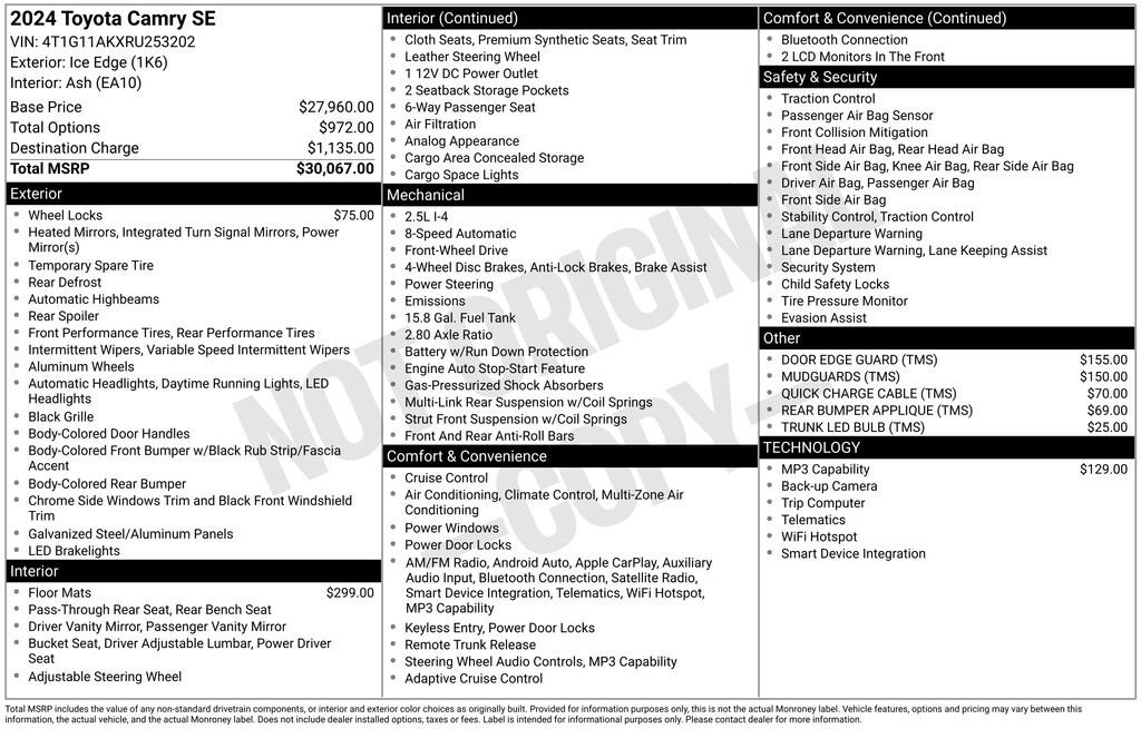 If you're in the market for a sophisticated, well-equipped, and fuel-efficient sedan, the 2024 Toyota Camry SE is a must-see. We invite you to visit our showroom and experience this exceptional vehicle for yourself. Let us demonstrate how this Camry can enhance your driving experience and become the perfect addition to your lifestyle.