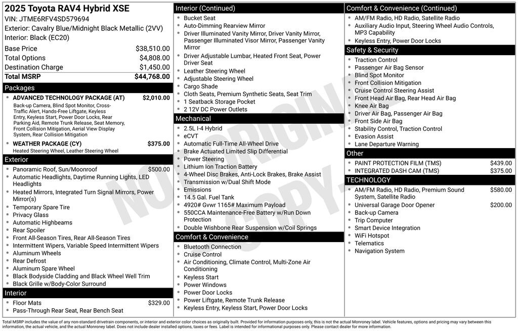 Beyond the exceptional standard features, this RAV4 Hybrid XSE also boasts an array of premium packages and accessories that elevate its capabilities and convenience: